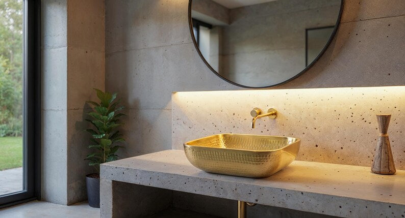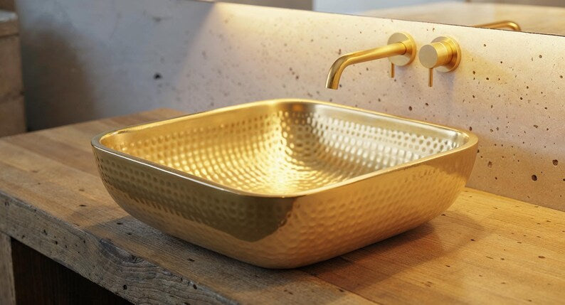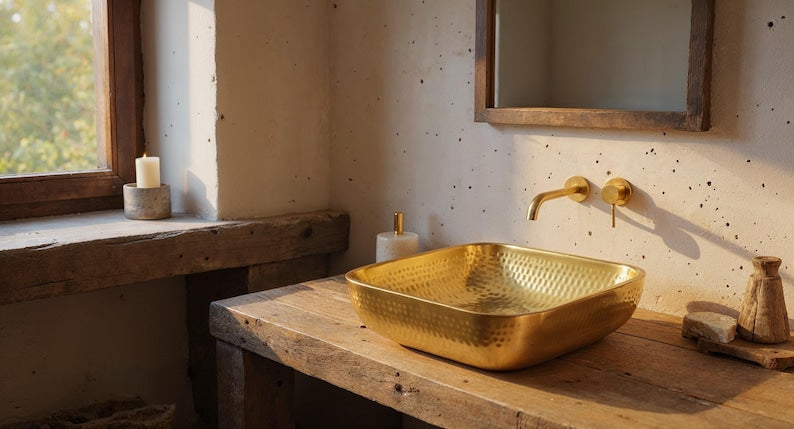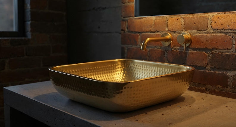 Each sink is individually handcrafted, making every piece unique in pattern, finish, and texture. Over time, brass naturally develops a soft patina, giving it even more character.