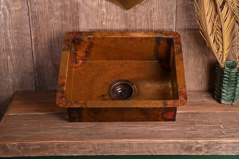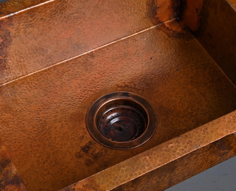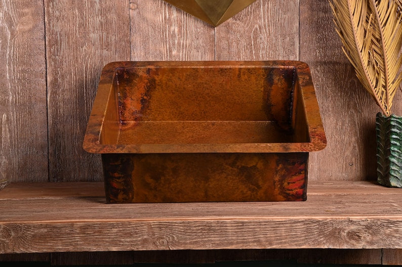 Hand-Hammered Copper Farmhouse Kitchen Sink: Large Rectangular Basin