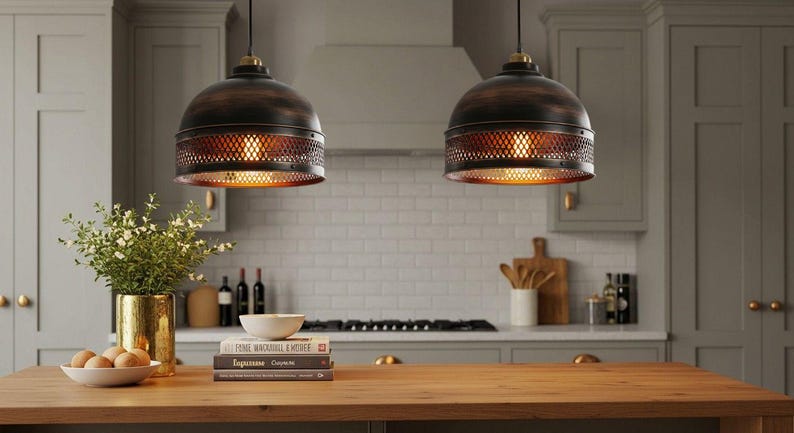 Hand Hammered Copper Pendant Light: Moroccan Farmhouse Lighting