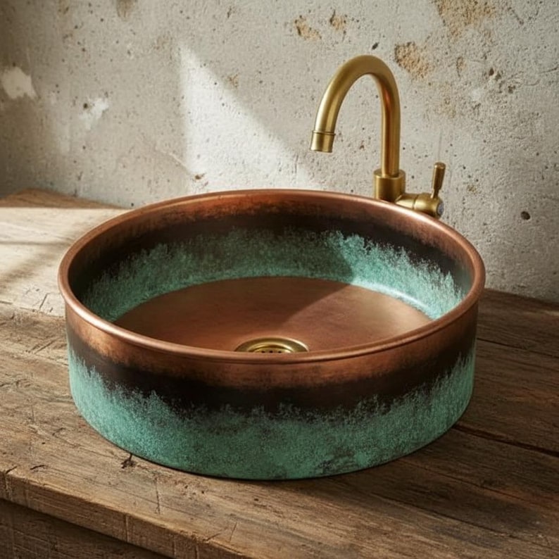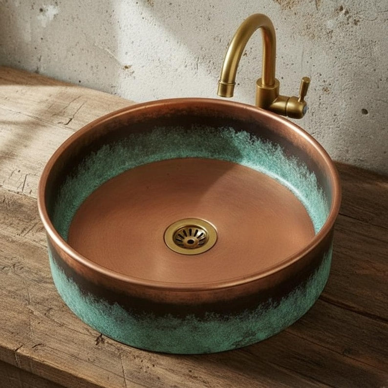 Hand Hammered Copper Sink: Green Patina, Moroccan Style Wash Basin