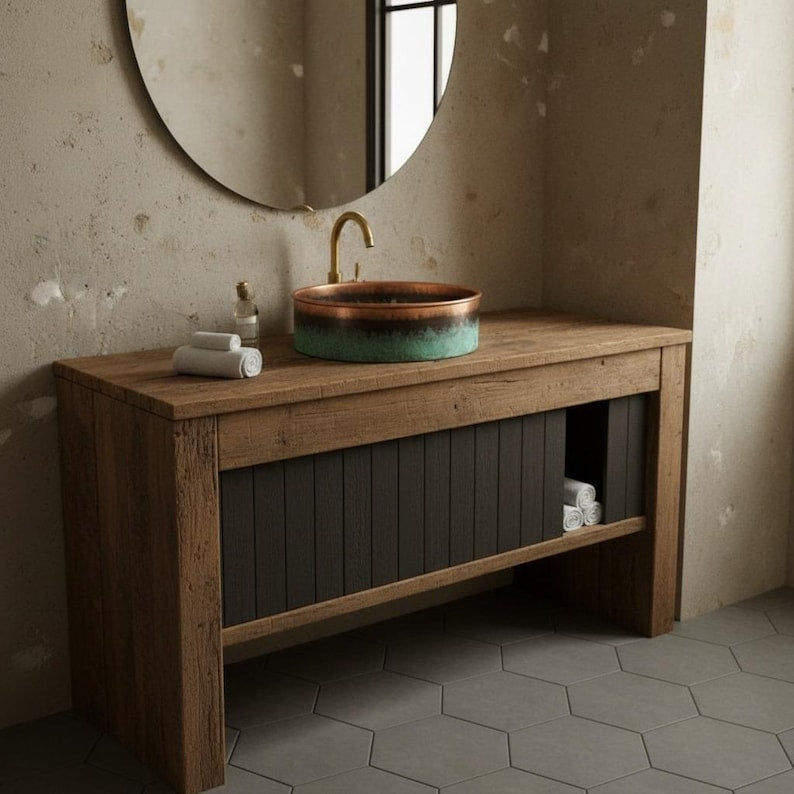 Add timeless charm and authenticity to your bathroom or kitchen with this handcrafted copper sink. Carefully made from premium copper, it showcases a hand-hammered interior with a smooth polished finish, while the exterior features a striking patina inspired by traditional Moroccan artistry.