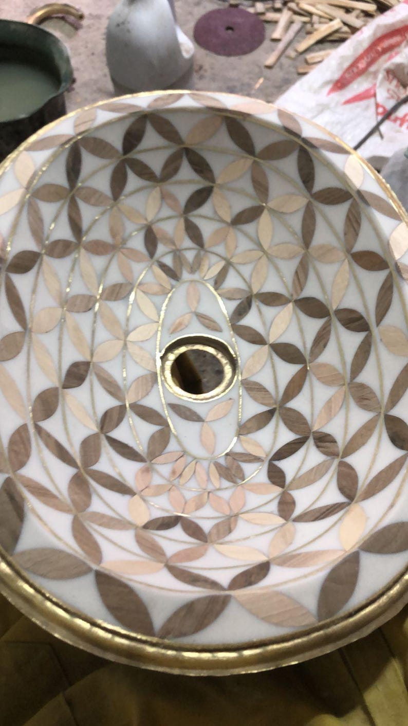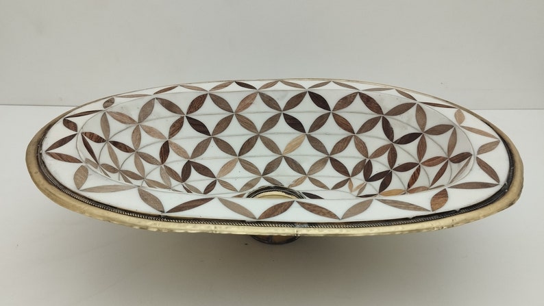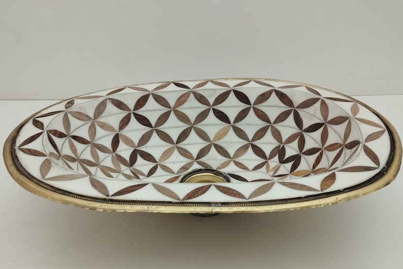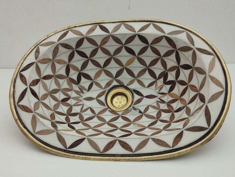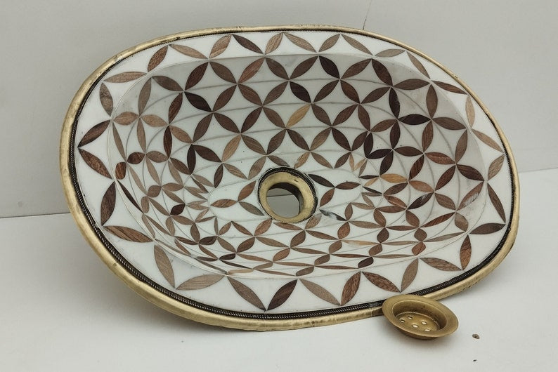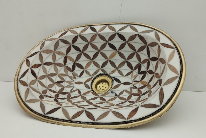 Handcrafted Drop in sink made of solid brass and wood for an aging vintage look. Made in Marrakech by passionate craftsmen and excellent workmanship.