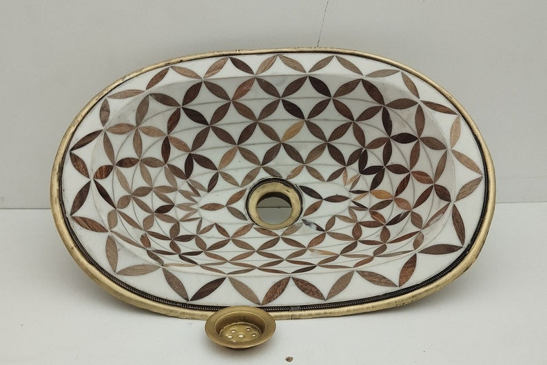 Handcrafted Brass & Wood Drop-In Sink: Oval Bathroom Vanity, Vintage Style