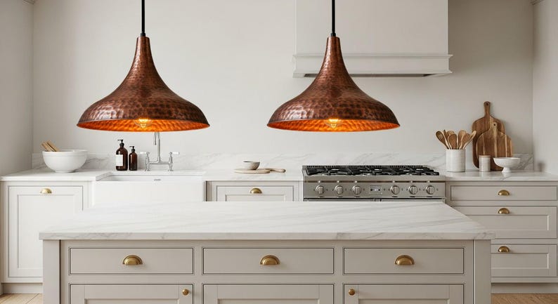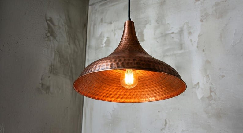 Farmhouse Hanging Ceiling Lamp, Handcrafted Copper Dome Lamp, Kitchen Island Lighting, Dome Pendant Lamp, Oxidized Copper Hanging Lamp