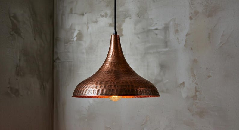 Handcrafted Copper Dome Pendant Light: Moroccan Boho Farmhouse Lamp
