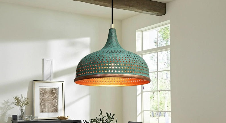 Handcrafted Copper Dome Pendant Light – Vintage Moroccan Style Ceiling Lamp