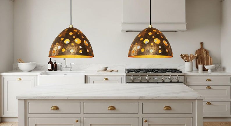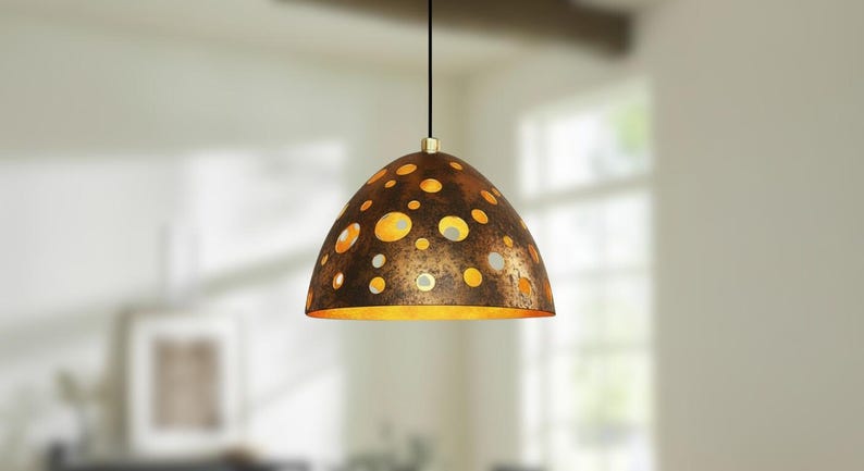Antique Bronze Pendant Dome Light,Copper Dome Pendant Light, Kitchen Island Lighting,Farmhouse Ceiling Lamp Fixture,Moroccan Artisan Fixture