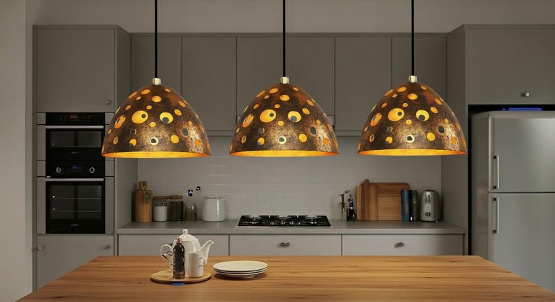 Perfect for kitchens, dining areas, living rooms, or entryways, this pendant adds a touch of rustic charm and modern elegance. Each piece is handmade by skilled artisans, making every lamp unique in texture and finish.