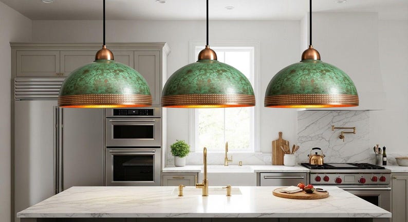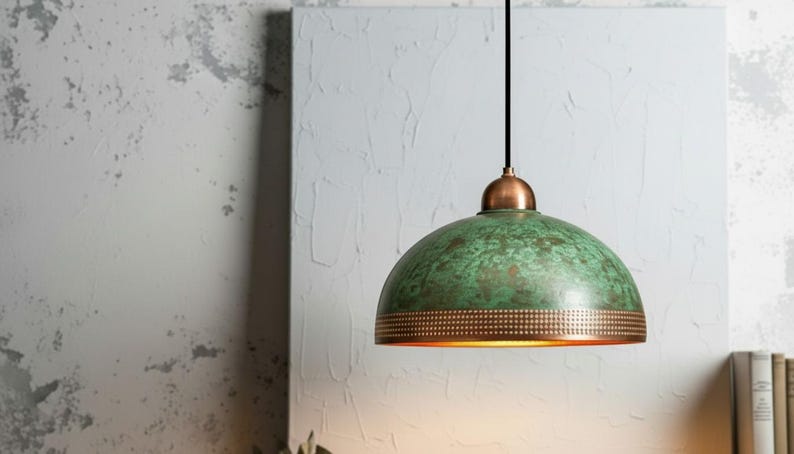 Copper Dining Room,Copper Farmhouse Light Fixture, Copper Dome Lamp, Ceiling Dome Lamp, Green Patina Light,Handcrafted Boho Lighting