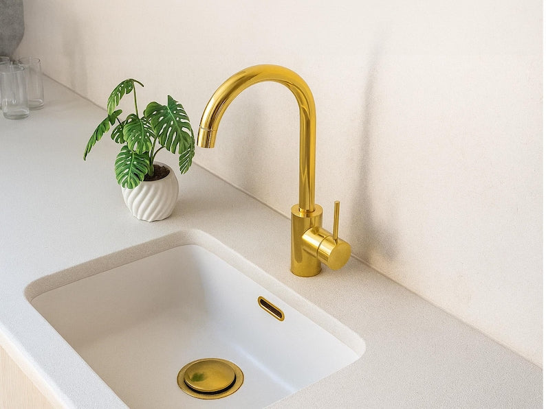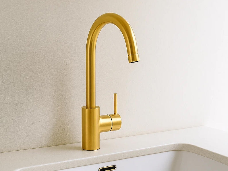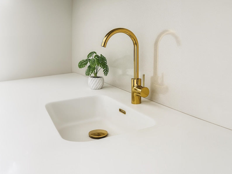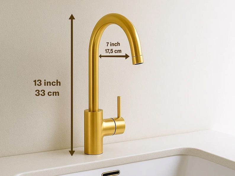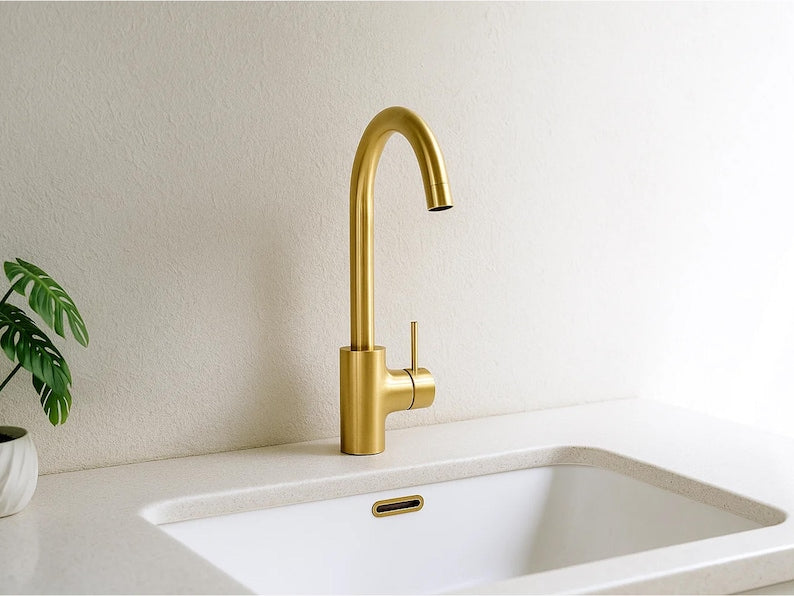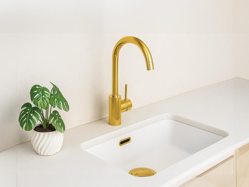 Elevate your bathroom or kitchen with the charm of this handcrafted Moroccan brass basin faucet. Expertly made by artisans in Marrakech, this one-hole, single-handle mixer combines traditional craftsmanship with modern utility. Over time, it will develop a unique vintage patina, adding to its timeless appeal.