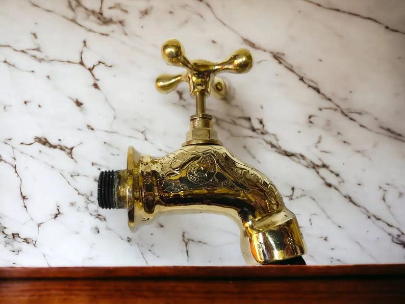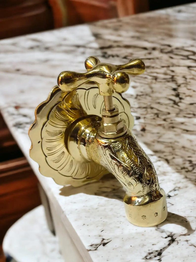 Handcrafted Moroccan Brass Faucet: Etched Bathroom Decor