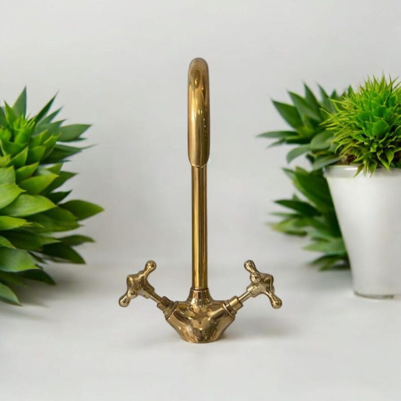 Elevate your space with the timeless elegance of our Handcrafted Moroccan Brass Faucet. Expertly forged by skilled artisans in Morocco, this faucet features intricate detailing and a warm, golden finish that brings a touch of exotic charm to any kitchen or bathroom. Crafted from solid brass, it offers durability, corrosion resistance, and an artisanal aesthetic that blends traditional Moroccan design with modern functionality. Each piece is unique, reflecting the heritage and craftsmanship passed down through generations.