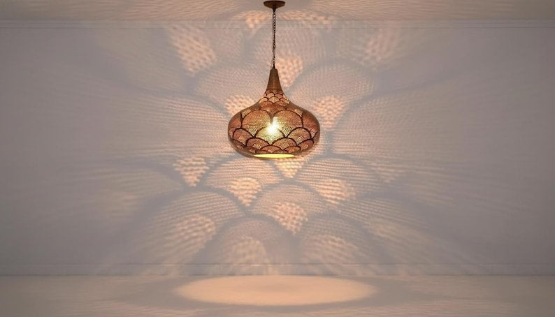 Handcrafted Moroccan Brass Pendant Light ,Pendant Lighting,Simple Moroccan Pendant Lamp ,Boho Chandelier Lighting,Pierced Teardrop Boho Lamp