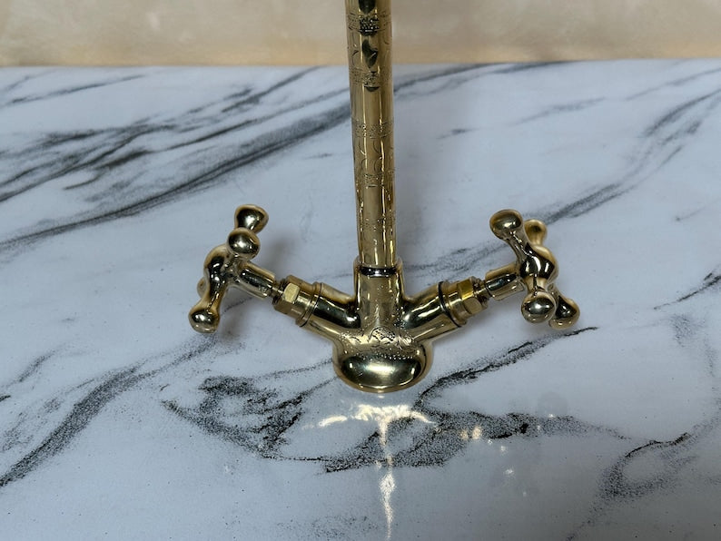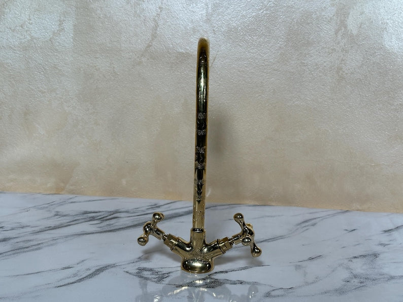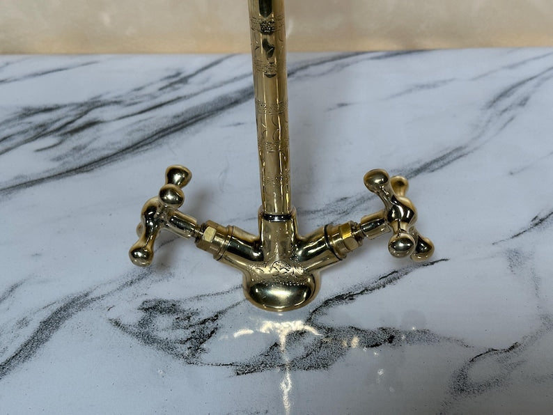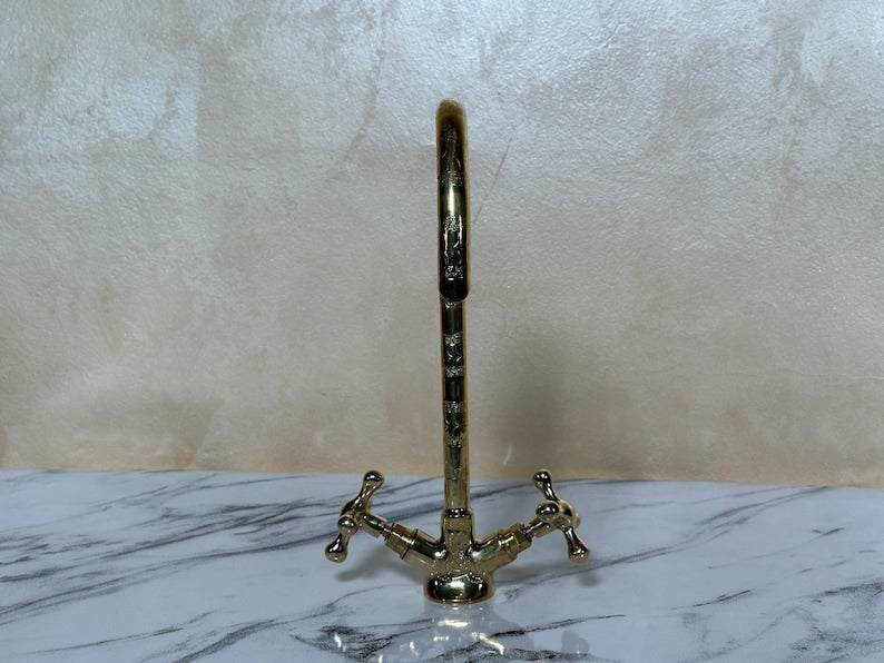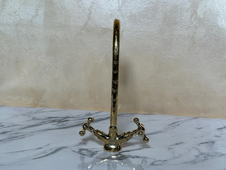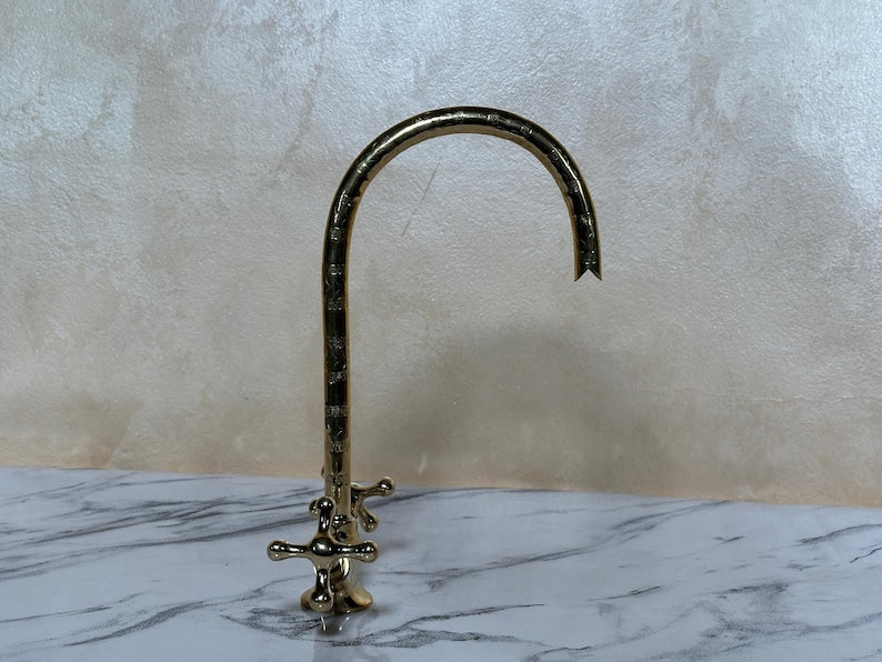 ✨ Elevate your interior with this handcrafted Moroccan solid brass faucet, made using traditional techniques passed down through generations in the heart of Marrakesh. With its classic dual-handle design and vintage aesthetic, this piece blends functionality with ornamental beauty.