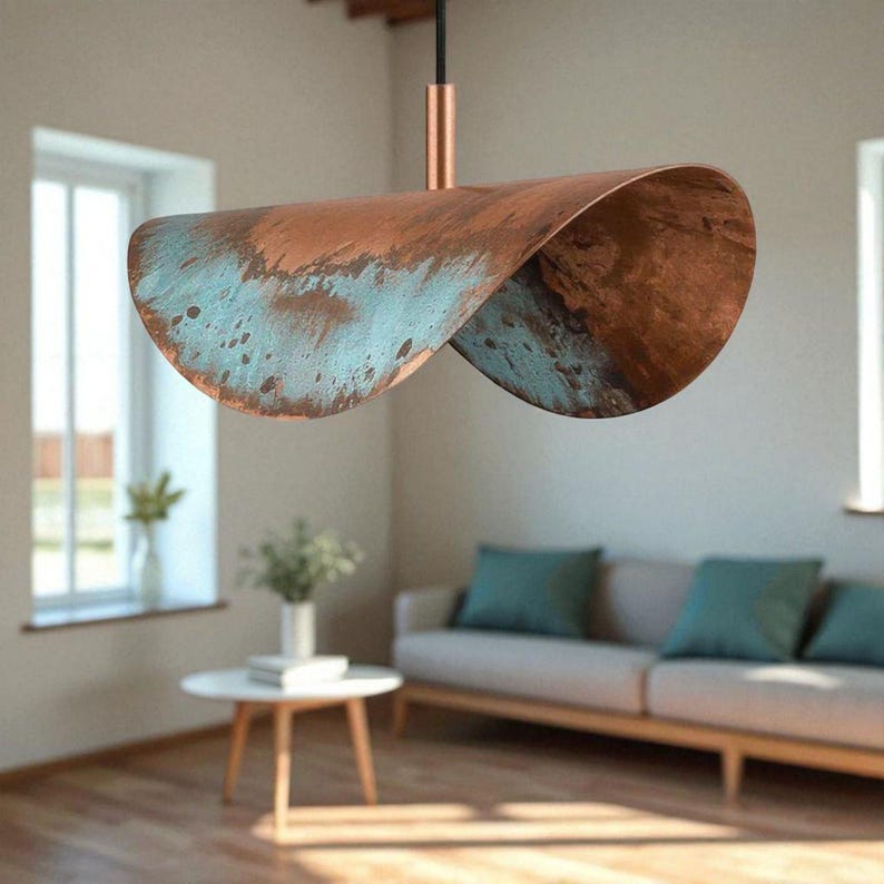 Transform your space with this handmade Moroccan copper pendant light. Designed with a unique wavy silhouette and finished in an aged rustic patina (blue-green & copper tones), this lamp blends vintage charm with modern industrial elegance. Perfect for kitchens, dining rooms, cafes, and rustic interiors.