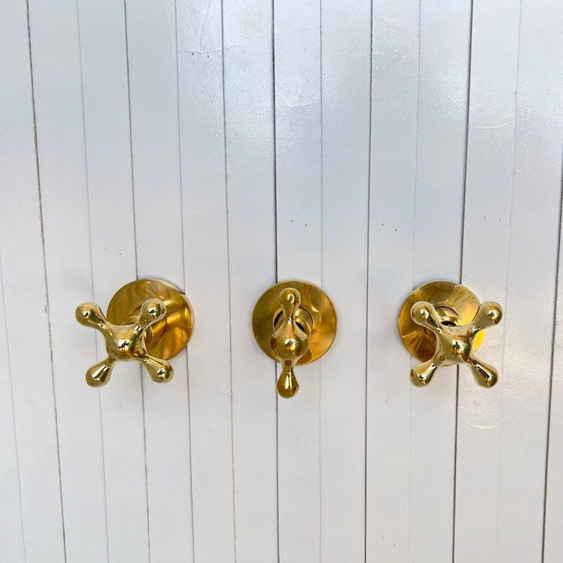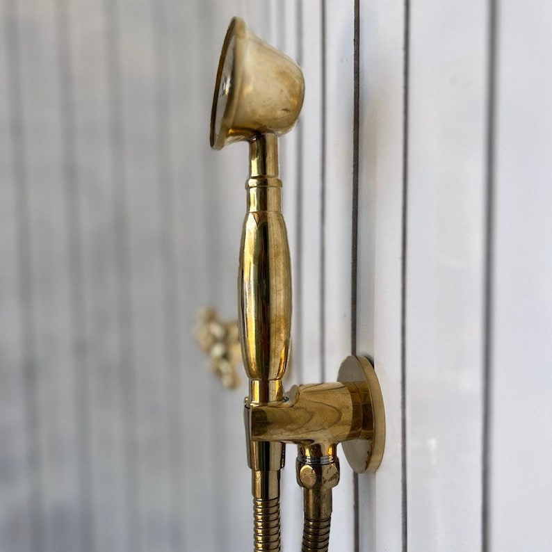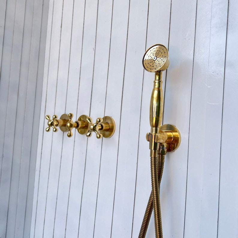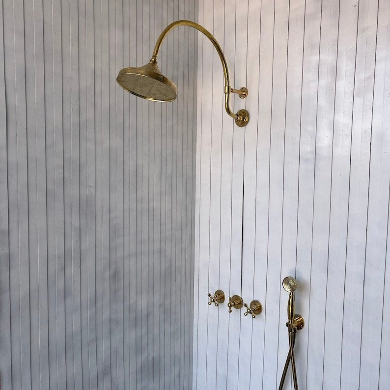 Handcrafted Solid Brass Round Shower Head & Handheld Set, Unlacquered Brass Shower System