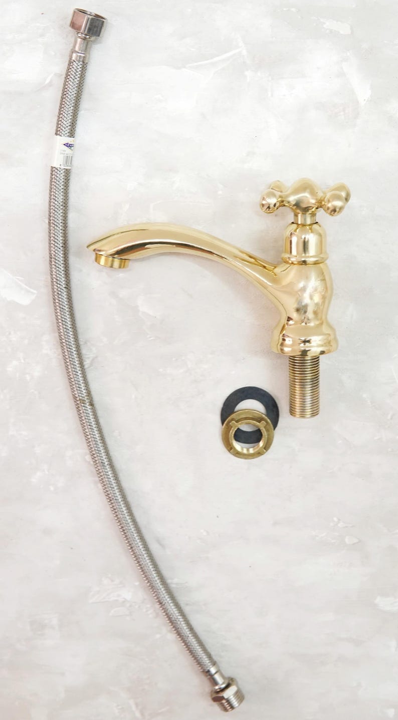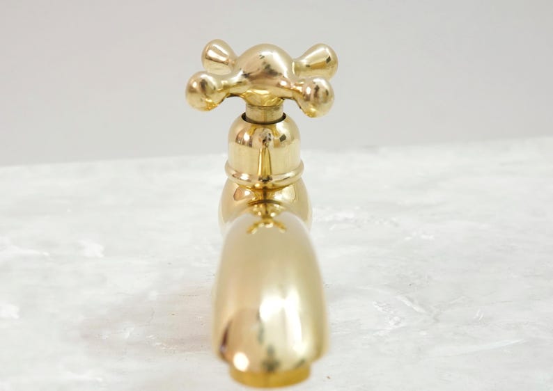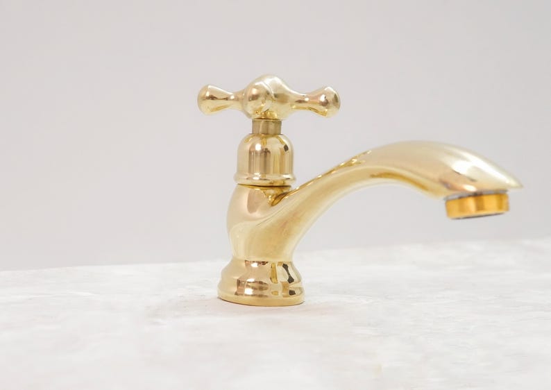 Handcrafted Unlacquered Brass Faucet: Vintage Moroccan Bathroom Fixture