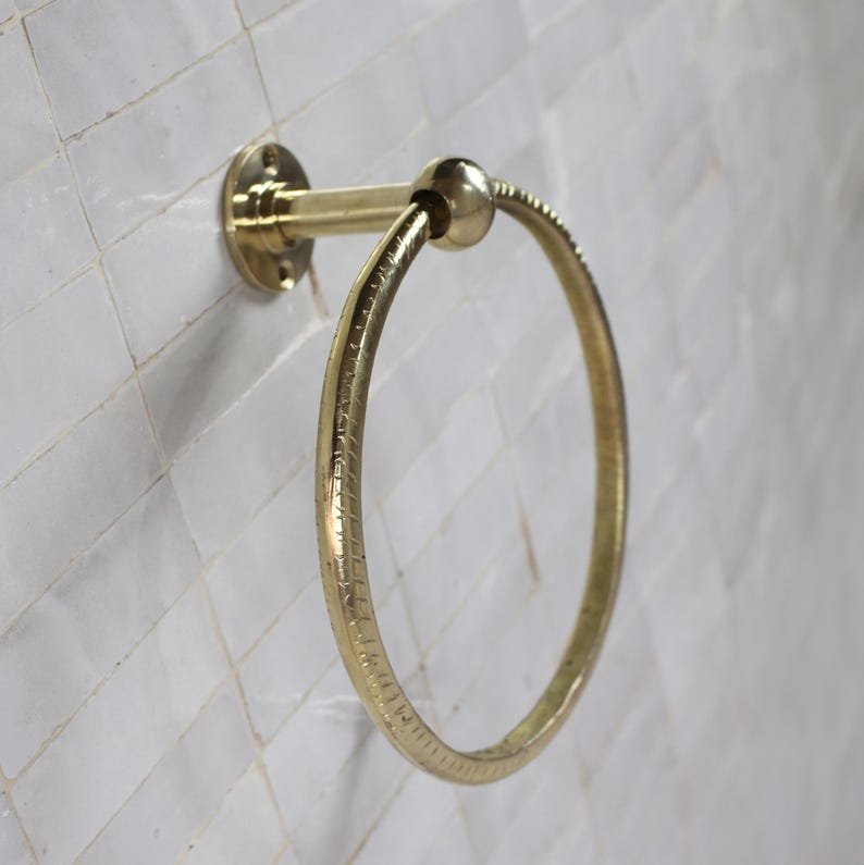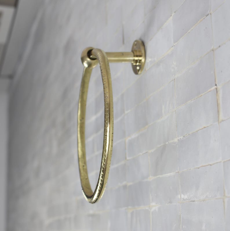 Handcrafted Unlacquered Brass Towel Ring: Antique Farmhouse Bathroom Decor
