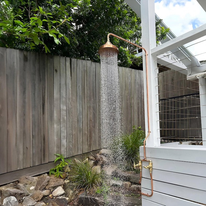Designed for both indoor and outdoor use, this solid copper rain shower head not only delivers a soothing cascade of water but also adds a touch of vintage sophistication to your space. The rich red hues of the copper elevate the aesthetics of your bathroom, creating a focal point that stands out. Whether you prefer a fixed copper rainfall shower head or the flexibility of a handheld option, this versatile piece offers functionality without compromising on style.
