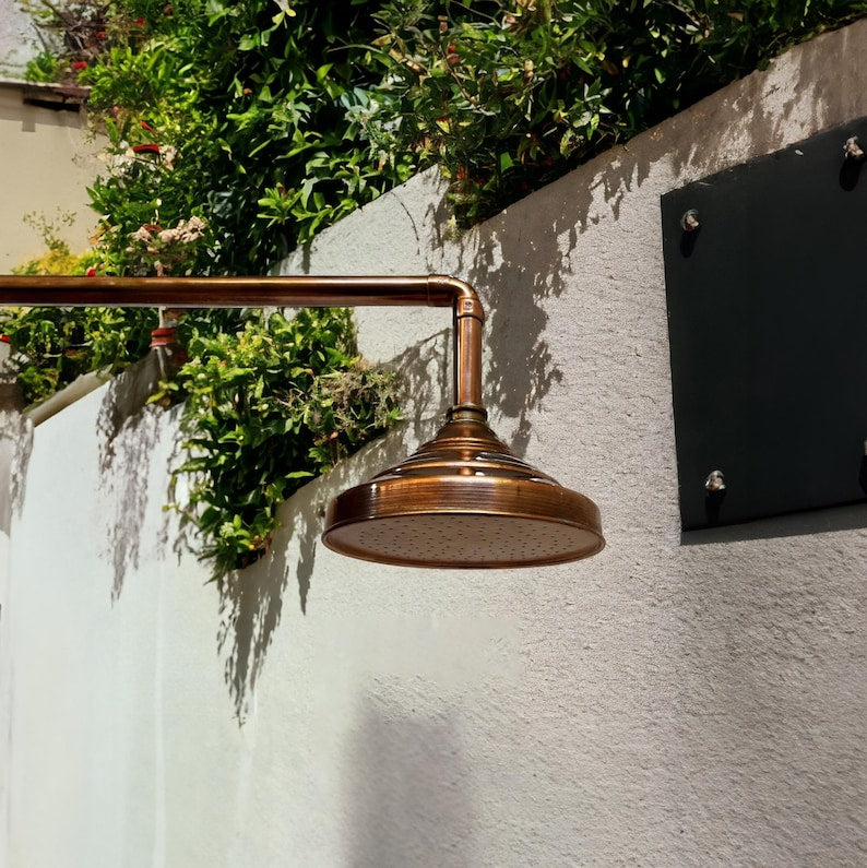 Crafted with care and attention to detail, this Handcrafted Unlacquered Copper Shower Head is a stunning addition to any bathroom. Embodying the elegance of antique copper, this copper outdoor shower head exudes a timeless charm that complements a variety of decor styles. Its large size ensures a luxurious shower experience, reminiscent of standing under a refreshing copper rainfall.