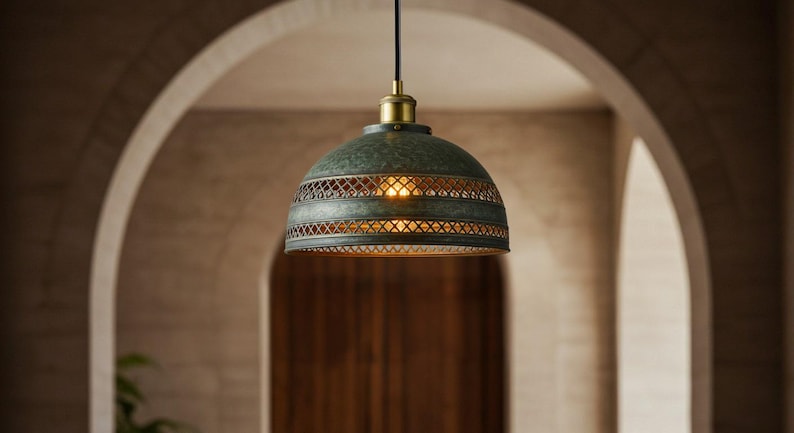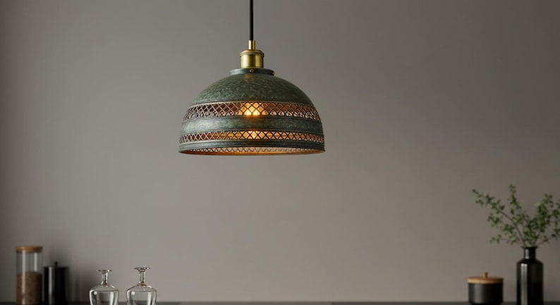 Handmade Brass Dome Pendant Light: Antique Patina Finish