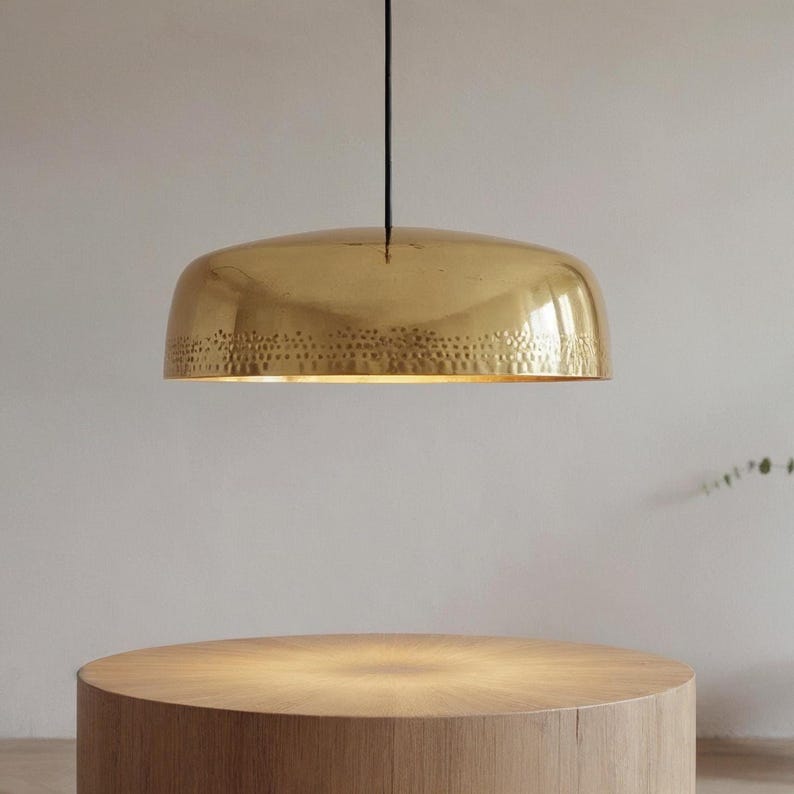 Handmade Brass Dome Pendant Light – Modern Minimalist Ceiling Lamp for Kitchen Island, Dining Room or Entryway | Moroccan Brass Lighting