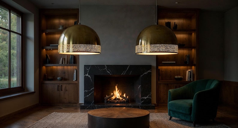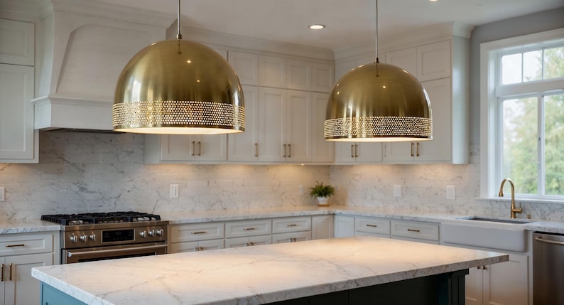 Handmade Brass Dome Pendant Light – Modern Minimalist Ceiling Lamp for Kitchen Island, Dining Room or Entryway | Moroccan Brass Lighting