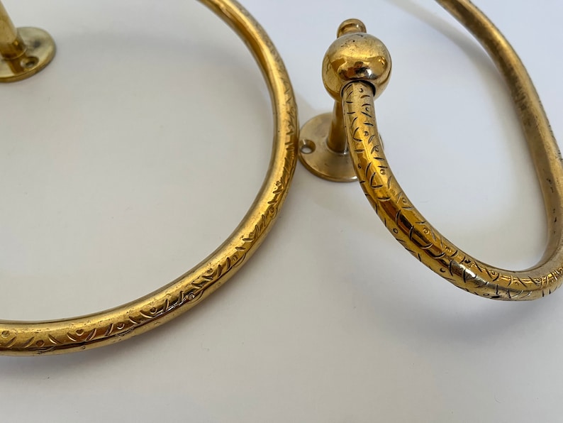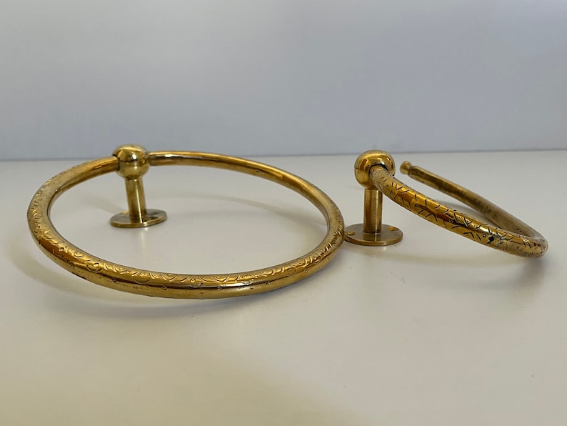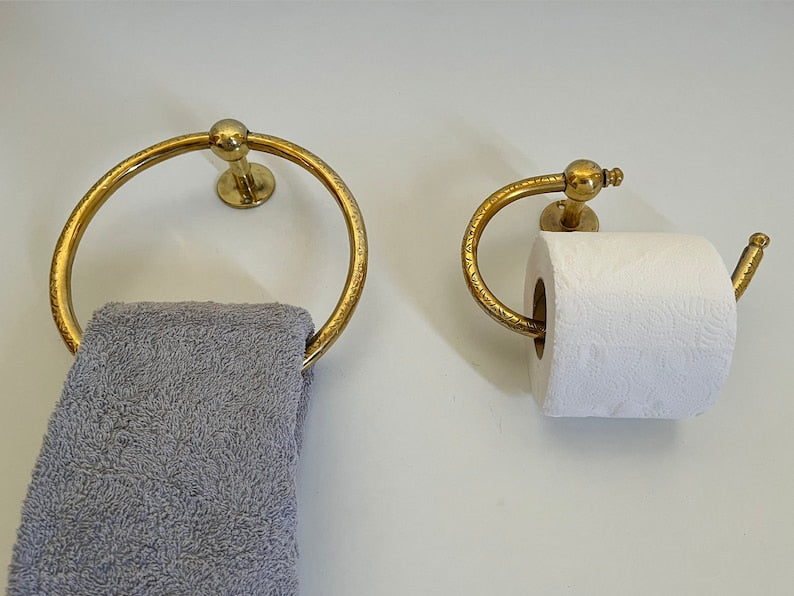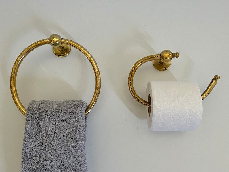 This towel holder and paper roll holder are 100% handmade of solid unlacquered brass, it gets warm patina overtime. It will add an elegant, charming and antique decoration to your space.