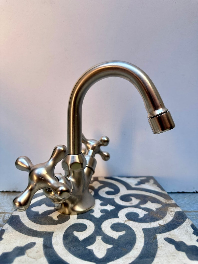 Handmade brushed nickel faucet, bathroom faucet, vanity faucet, small nickel finish faucet, bathroom nickel faucet