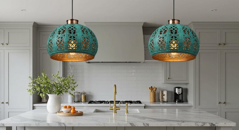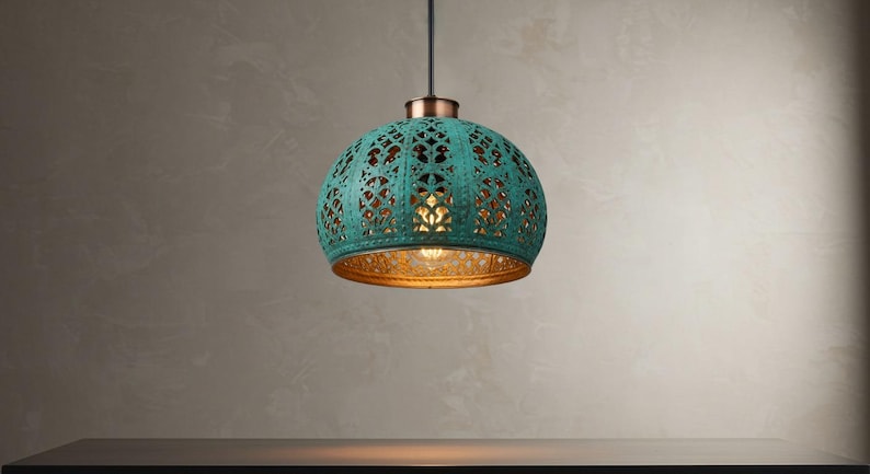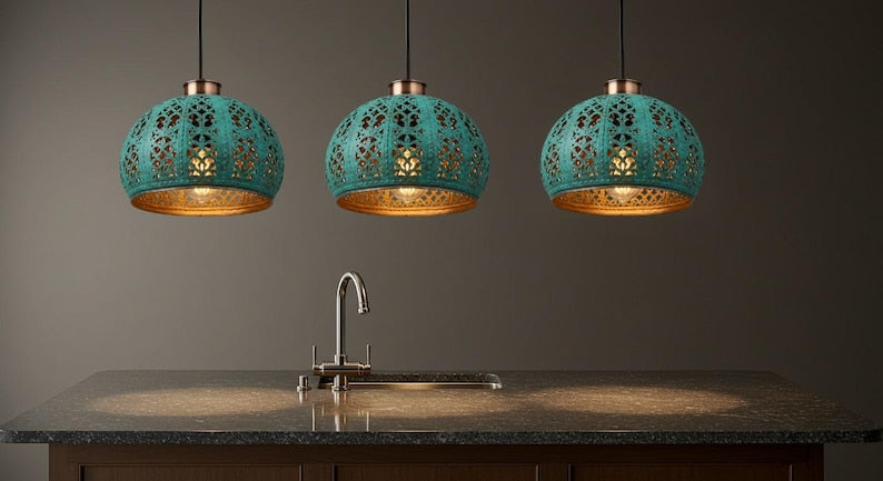 Handmade Green Patina Light , Hanging Dome Lamp , Copper Dome Pendant Lamp, kitchen island Light, Copper Dome Lamp