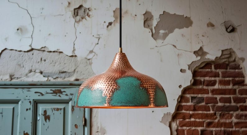 Bring timeless charm and artisanal elegance into your home with this handcrafted copper pendant lamp. Featuring a stunning green patina finish, each piece is uniquely aged to highlight the natural beauty of copper, creating a soft vintage glow that warms any space.