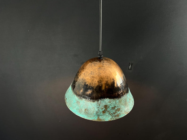 Handmade Copper Pendant Light: Rustic Green Patina Dome Lamp