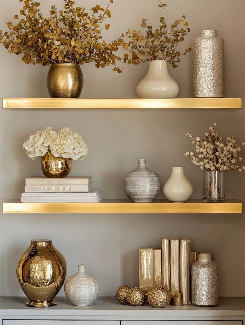 Handmade Golden Floating Shelf: Modern Laminated Shelves
