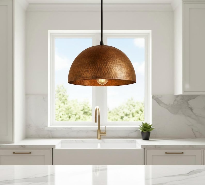 Handmade Hammered Brass Dome Pendant Light – Modern Brass Ceiling Lamp, Boho Kitchen Island Lighting customized