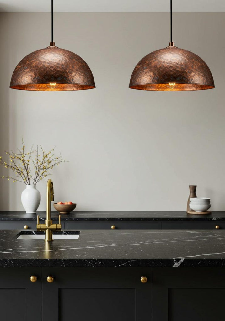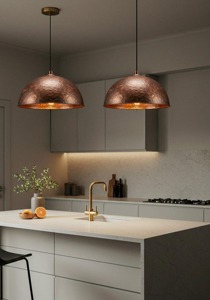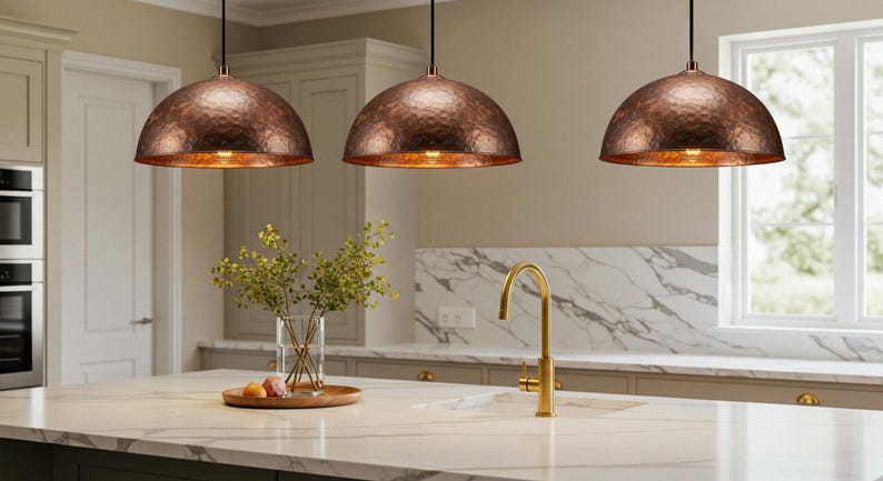 Handmade Hammered Copper Dome Pendant Lamp: Industrial Kitchen Lighting