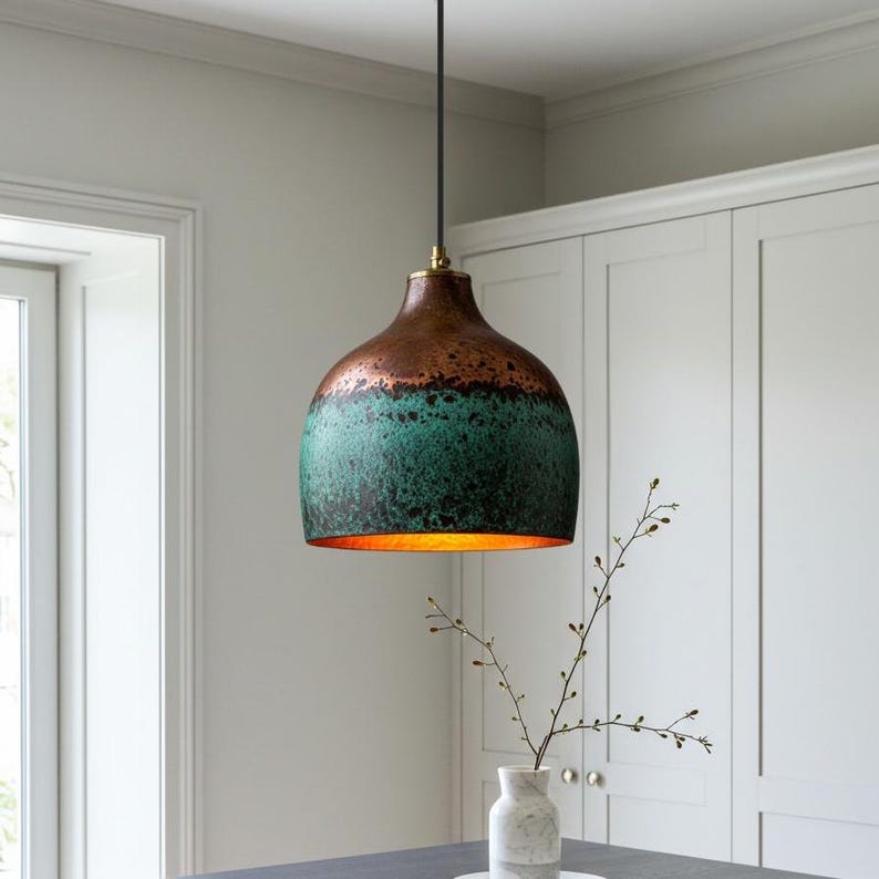 Modern Copper Dome Pendant Lamp Green Patina, Hammerd Dome Lamp, Ceiling Dome Lamp, Copper Dome Light fixture, Rustic Chandelier