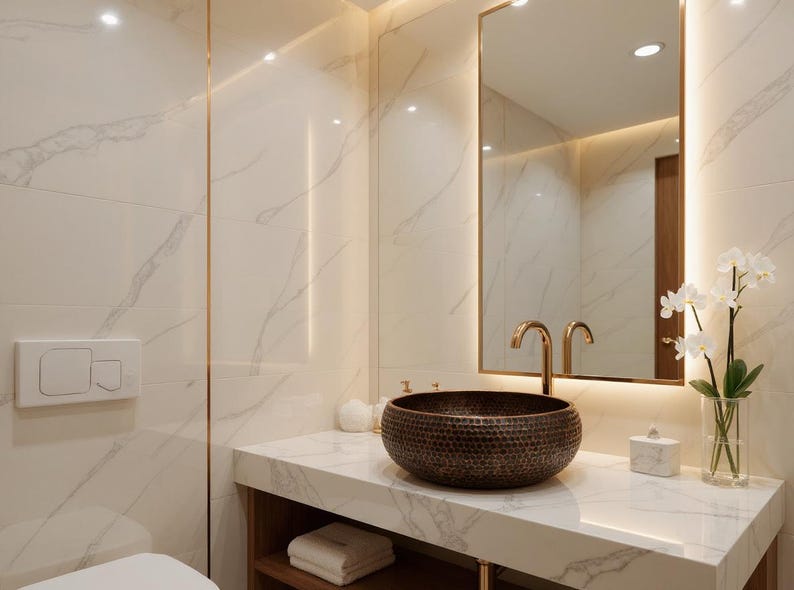 👉 Large (45–50 cm) makes a bold statement in luxury bathrooms.