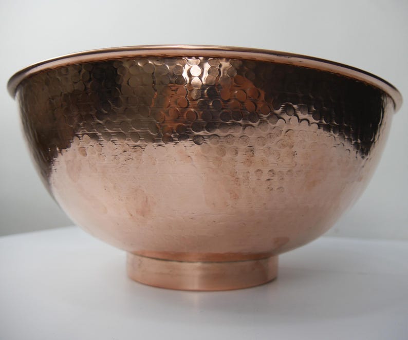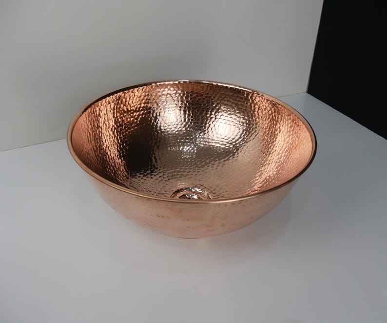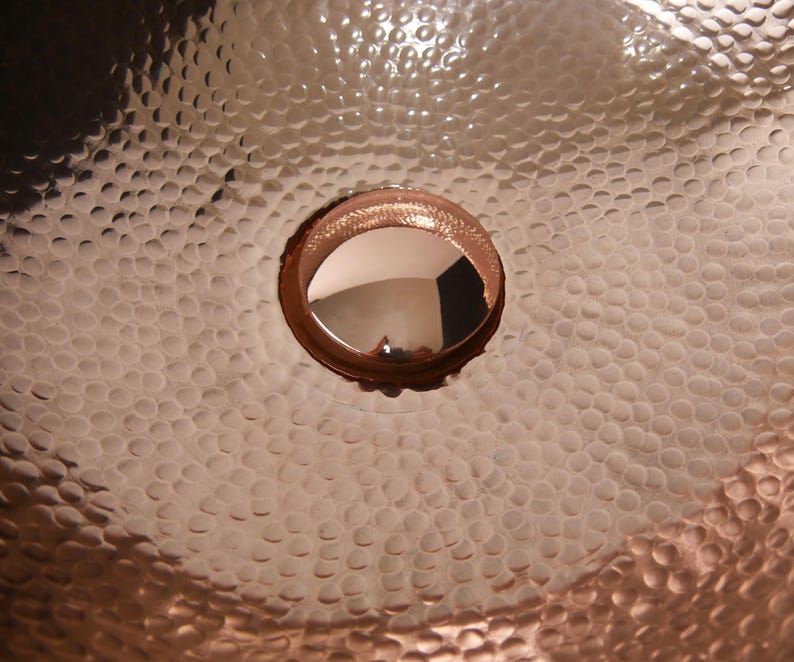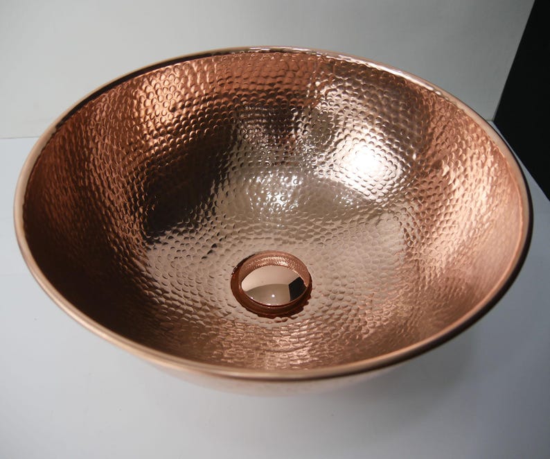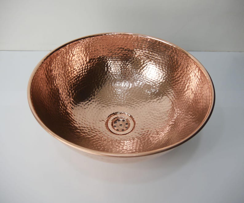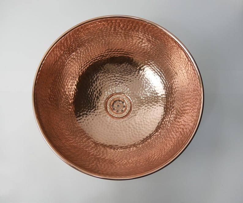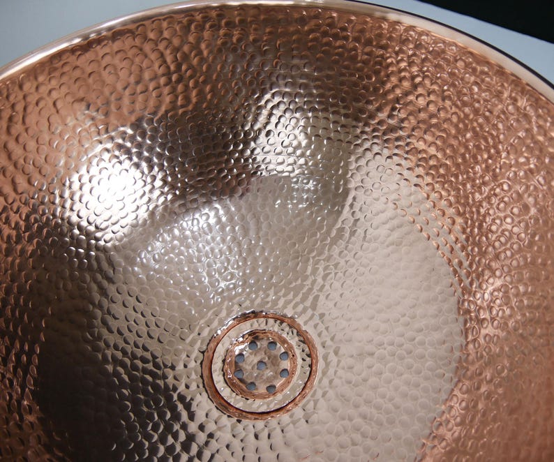 Each sink is unique with slight variations in hammering pattern and color. The copper will age naturally, developing a beautiful patina that adds to its character.