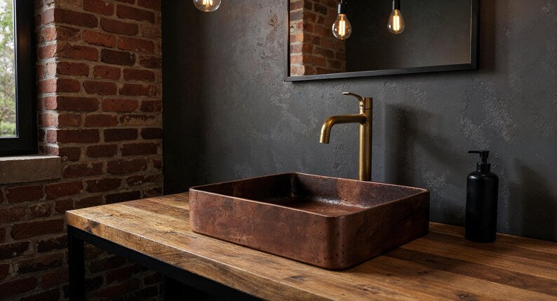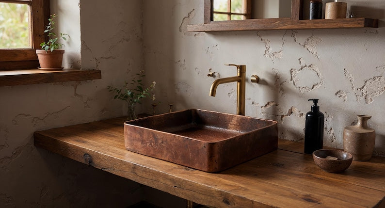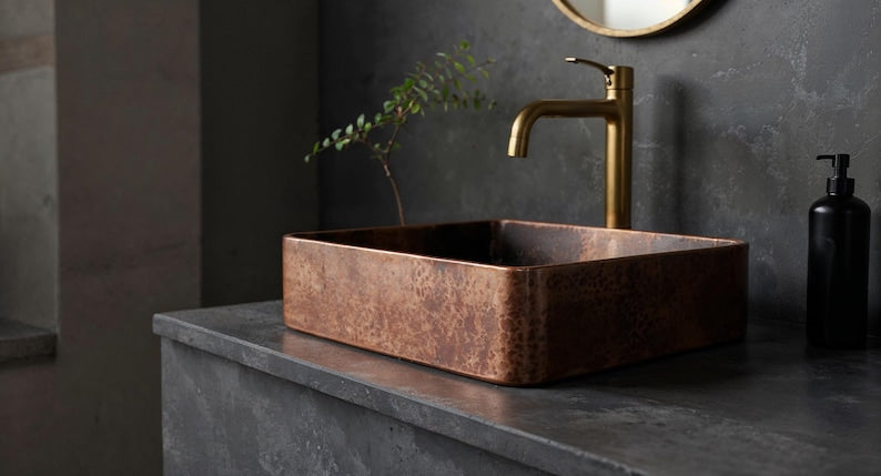 Perfect for farmhouse, rustic, or modern luxury bathrooms, this copper sink naturally resists bacteria and develops a beautiful patina over time.