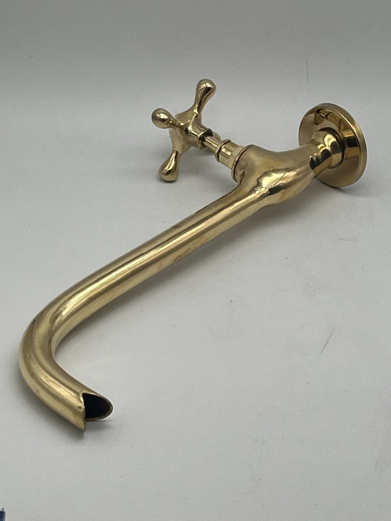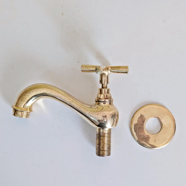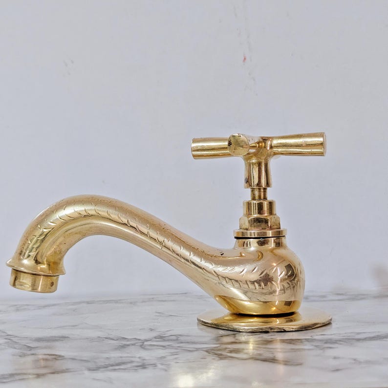 Transform your bathroom into a timeless space of artisan beauty with this handmade Moroccan brass faucet. Skillfully crafted by master artisans in Morocco, this faucet is a celebration of traditional craftsmanship, rich cultural heritage, and functional design. Made from 100% solid brass and finished by hand, each piece exudes a unique charm that can't be replicated by mass-produced fixtures.