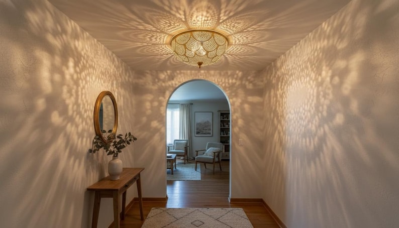 Handmade Moroccan Brass Ceiling Light: Geometric Wall Sconce