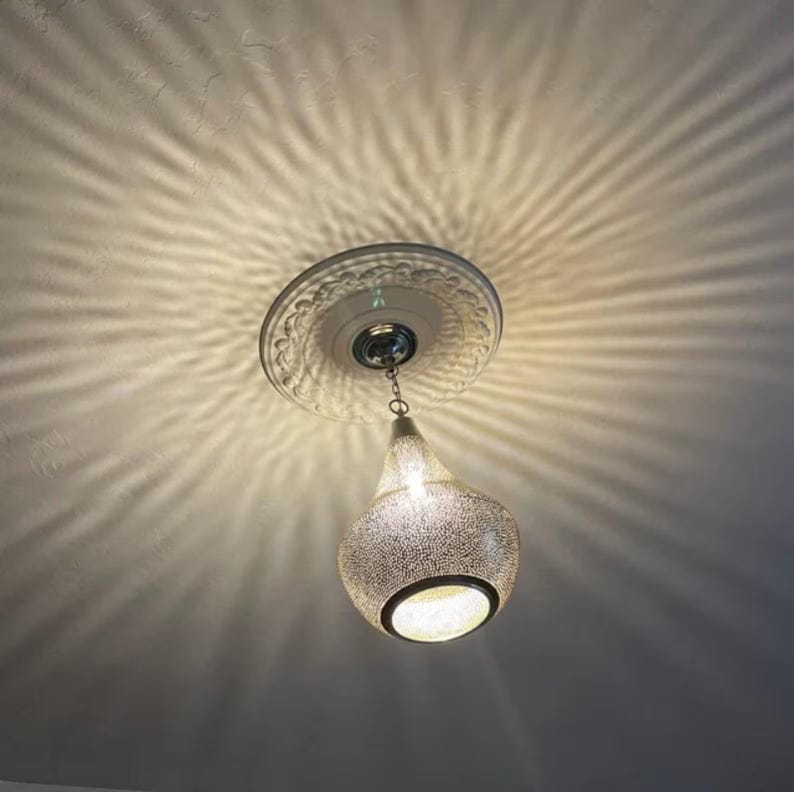 Designed to cast stunning patterns of light and shadow, this pendant lamp is perfect for entryways, dining rooms, bedrooms, or even cozy corners of your home. Whether you're looking for a bohemian, classic, or contemporary Moroccan aesthetic, this lamp is sure to become a statement piece