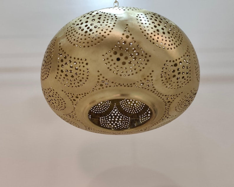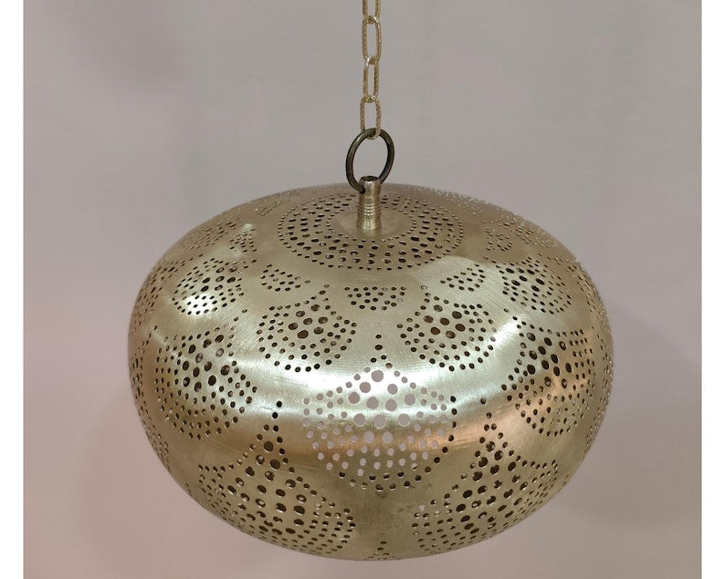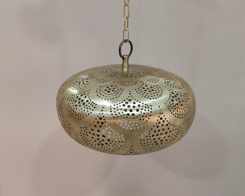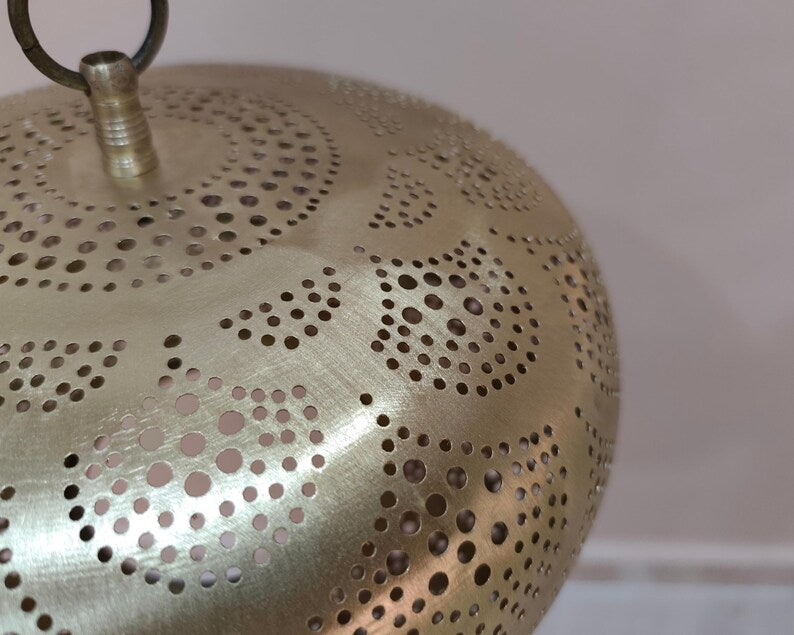 Handmade Brass Pendant Light – Modern Moroccan Hanging Lamp for Kitchen, Dining Room, or Living Space