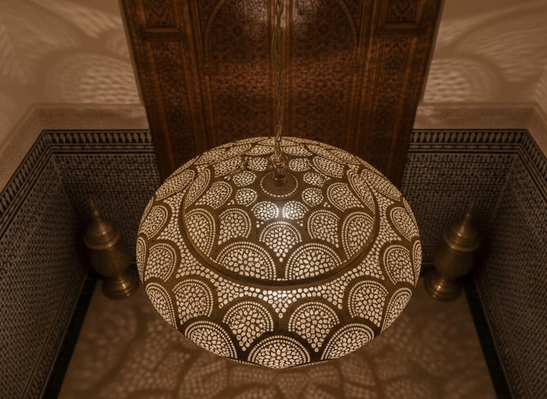 Handmade Moroccan Brass Pendant Light: Boho Home Decor