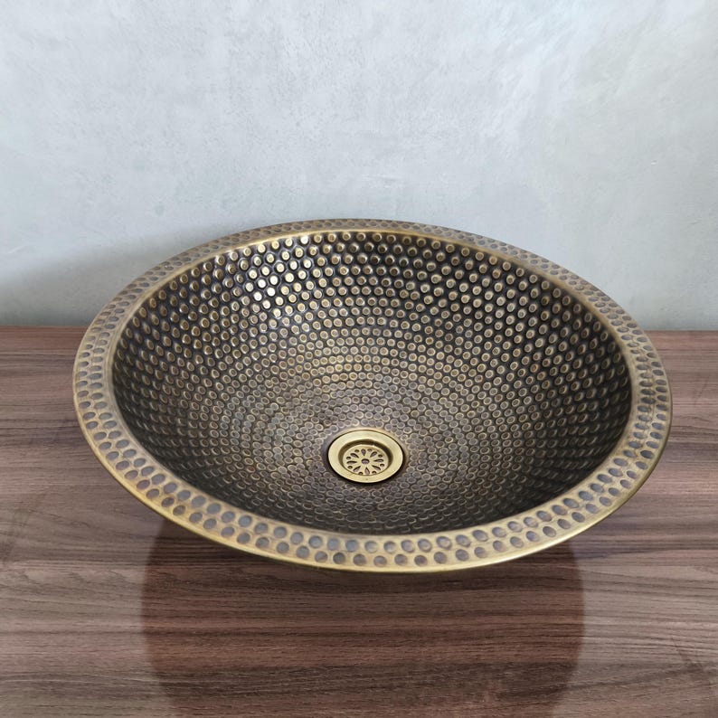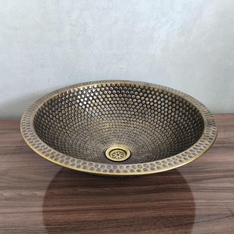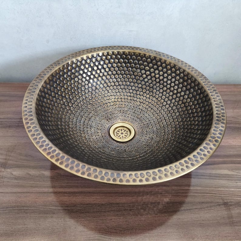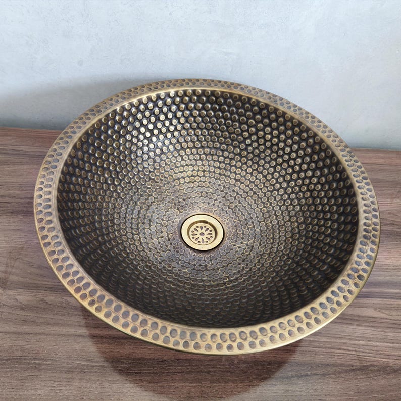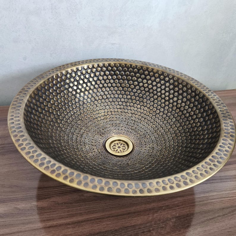Handmade Moroccan Brass Sink: Hammered Basin with Matching Drain