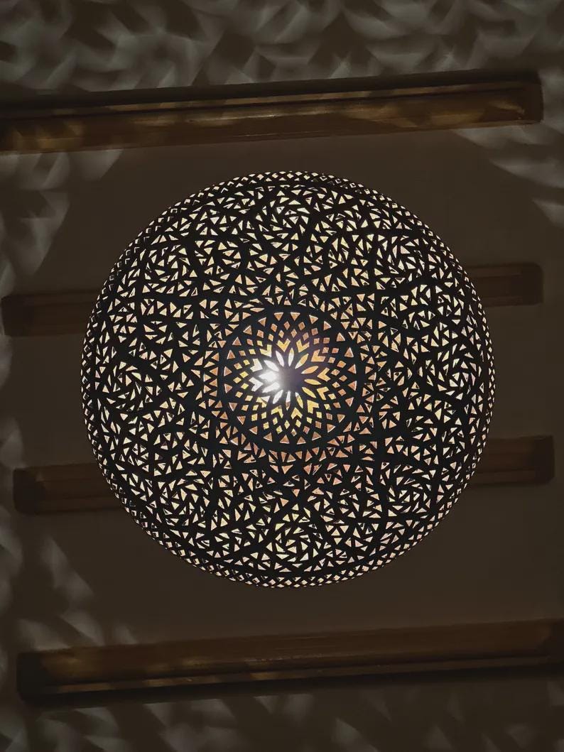 This brass ceiling light fits perfectly in bedrooms, living rooms, entryways, restaurants, riads, or any boho / modern décor space.