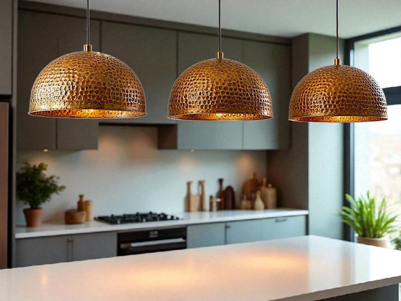 A Warm, Inviting Glow: The warm, polished copper on the inside of the dome reflects light with a soft, inviting radiance. This creates a cozy and welcoming atmosphere, perfect for gathering with family and friends around your kitchen island or dining table.