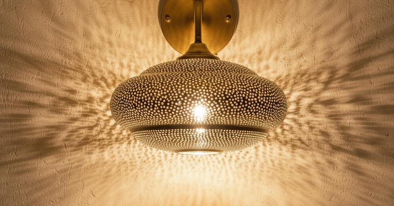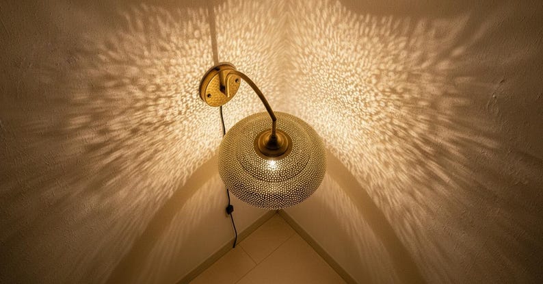 Handmade Moroccan Brass Wall Sconce: Boho Home Lighting