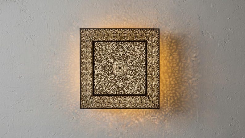 Moroccan Brass Wall Sconce | Handmade Oriental Wall Light | Rustic Boho Wall Lamp | Vintage Shadow Decor | Brass Moroccan Lantern
