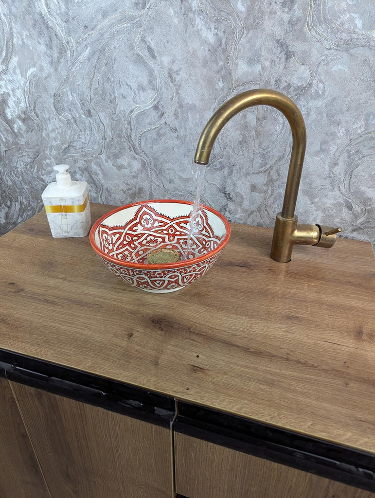 Discover the timeless elegance of our Moroccan Ceramic Sink, handcrafted with meticulous attention to detail in the heart of Morocco. Each sink embodies the rich cultural heritage and craftsmanship of Moroccan artisans, making it a stunning addition to any bathroom or kitchen.